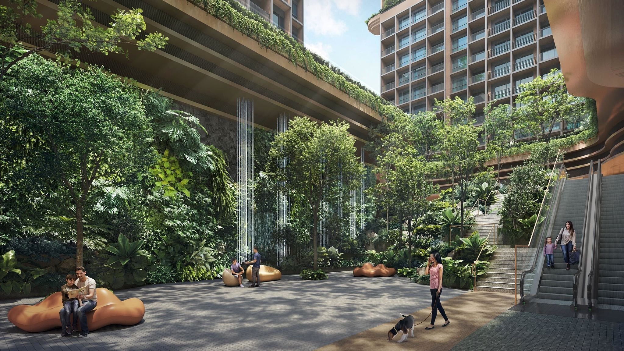 Landscaped sky gardens, rooftop sanctuaries, and cascading pools